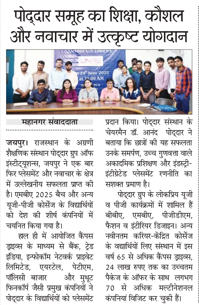 Poddar International College Poddar Business School Poddar Management & Technical Campus Poddar International College of Pharmacy Poddar Management Training Institute