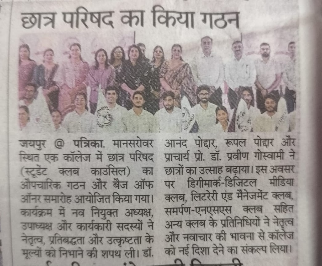 • Mansarovar Campus :- Sector-7, Near Shipra Path Mansarovar, Jaipur (RJ) - 302020