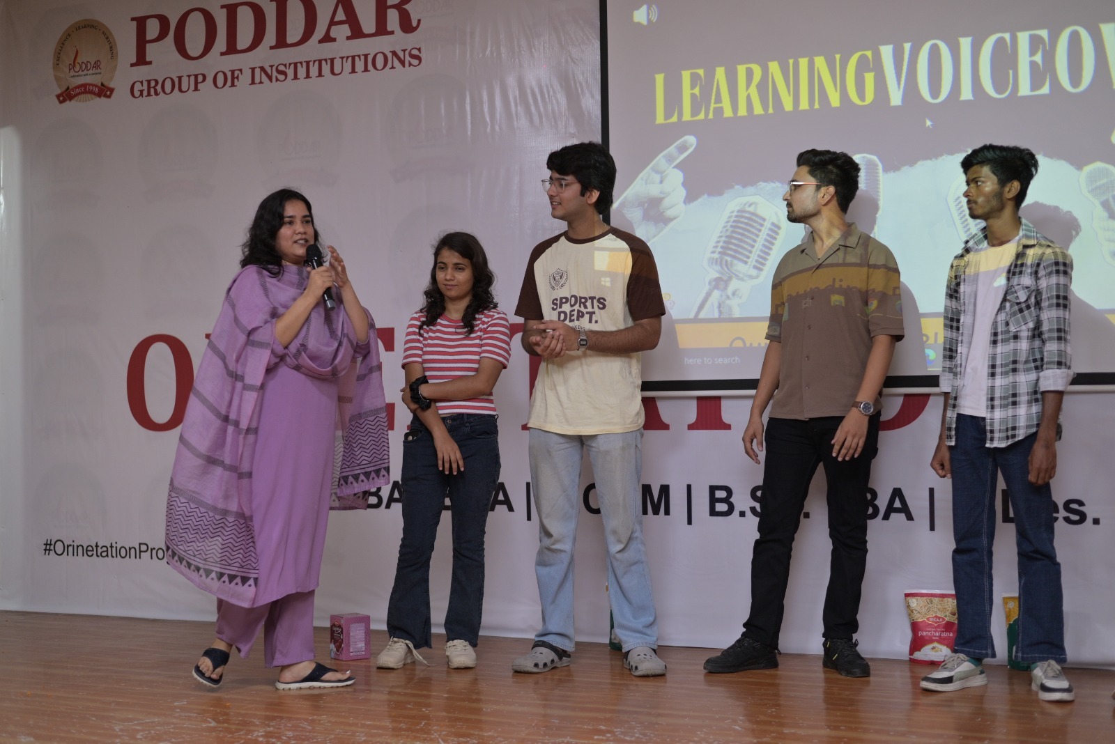 The first day of the Student Orientation Programme “Aarambh – 2025” at Poddar International College was filled with enthusiasm, warmth, and inspiration. The event began with the traditional Tilak ceremony, followed by registration and a warm welcome of the new students. Hosts Dr. Shiva Sharma and Ms. Monika Pareek led the program with grace and energy.