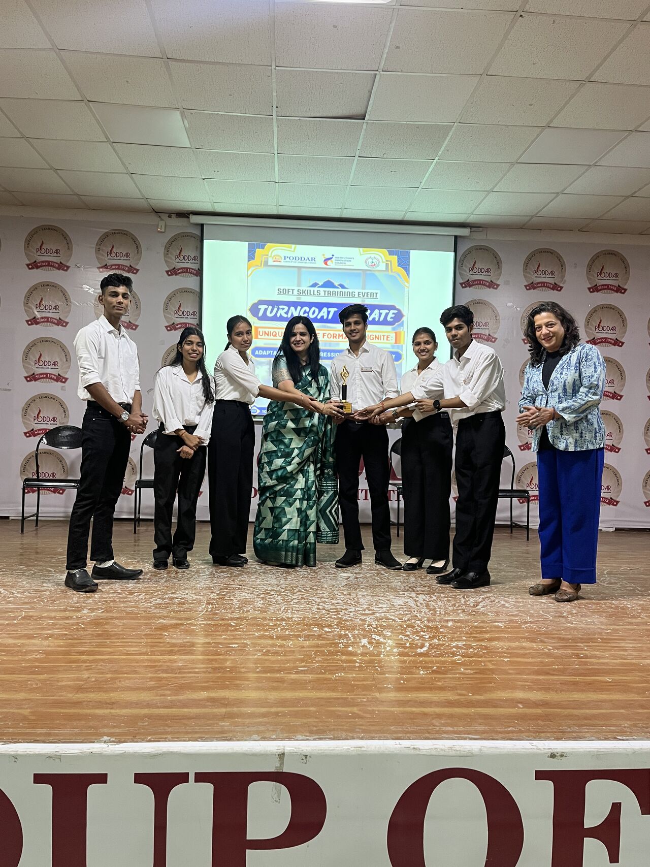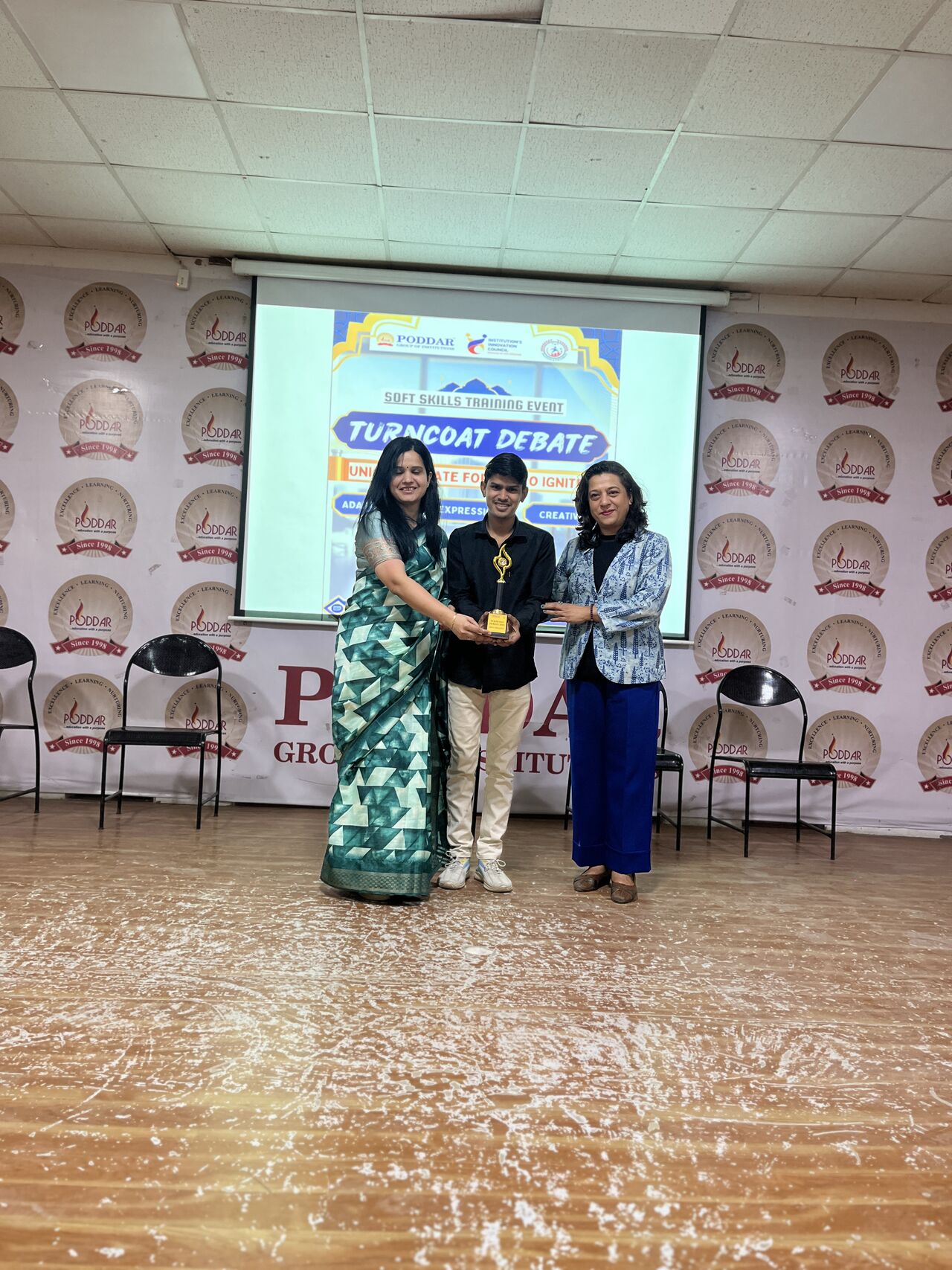 The Training and Placement Cell at Poddar International College organized an engaging Turncoat Debate under the guidance of Head of Training, Ms. Anuradha Banerjee Ghosh and Ms. Kiran Chaturvedi, Placement Officer. Unlike traditional debates, the Turncoat format challenges participants to think on their feet, switch perspectives instantly, and demonstrate true mastery of interpersonal communication.