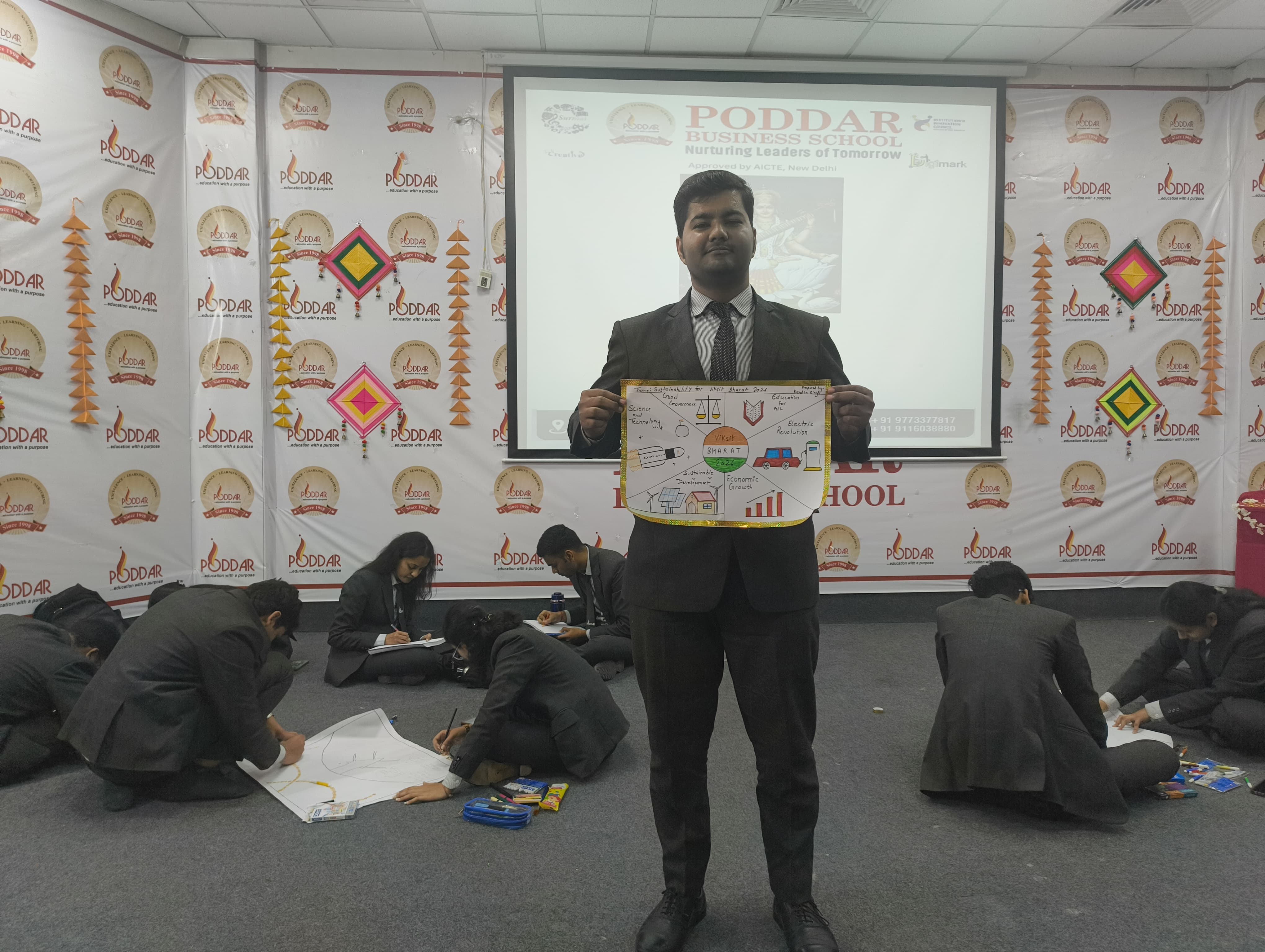 Poddar Business School celebrated Basant Panchami on 23rd January 2026 with devotion and enthusiasm under the aegis of the Cultural Club. The event was coordinated and implemented by Dr. Sarita Choudhary, Convenor – Cultural Club, with active participation from PGDM students. The celebration aimed to promote cultural values, spiritual awareness, creativity, and respect for Indian traditions.
