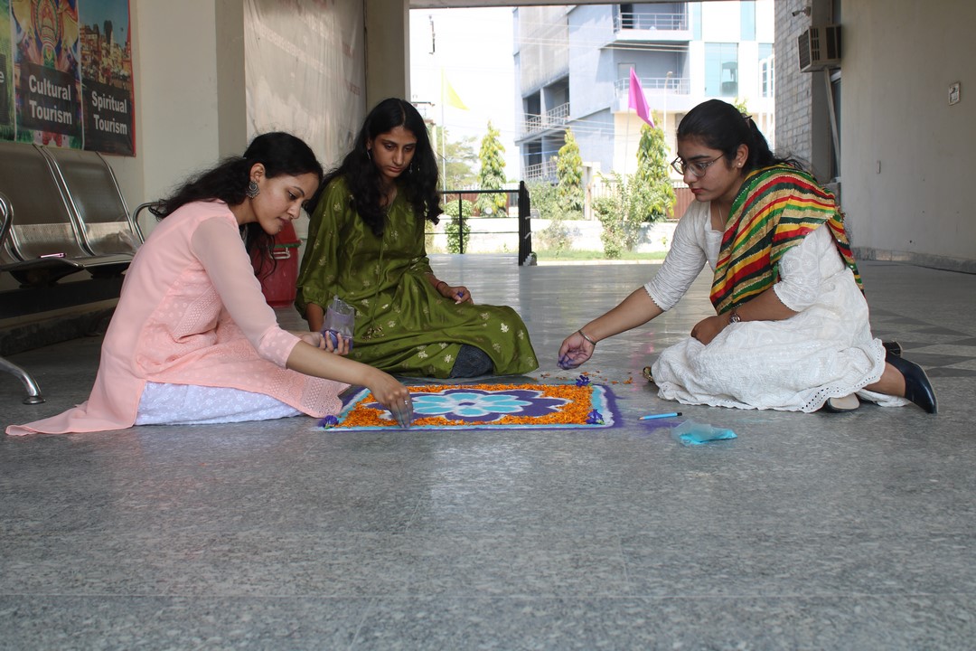 The celebration began at 10:00 a.m. with vibrant Rangoli Making and Diya Decoration Competitions as pre-event activities. Students showcased their creativity through colorful rangolis and beautifully decorated diyas that adorned the auditorium entrance, symbolizing positivity and prosperity.