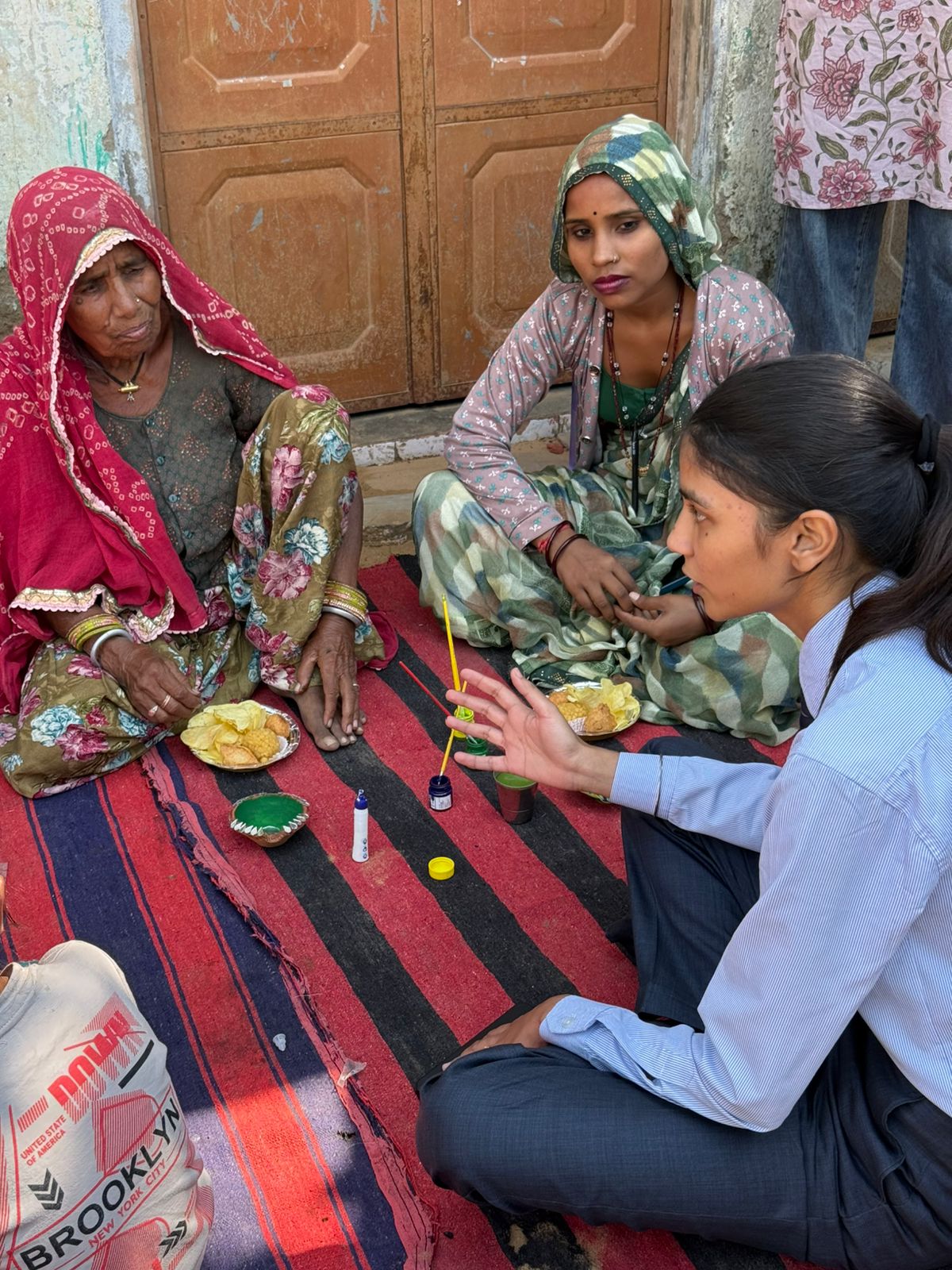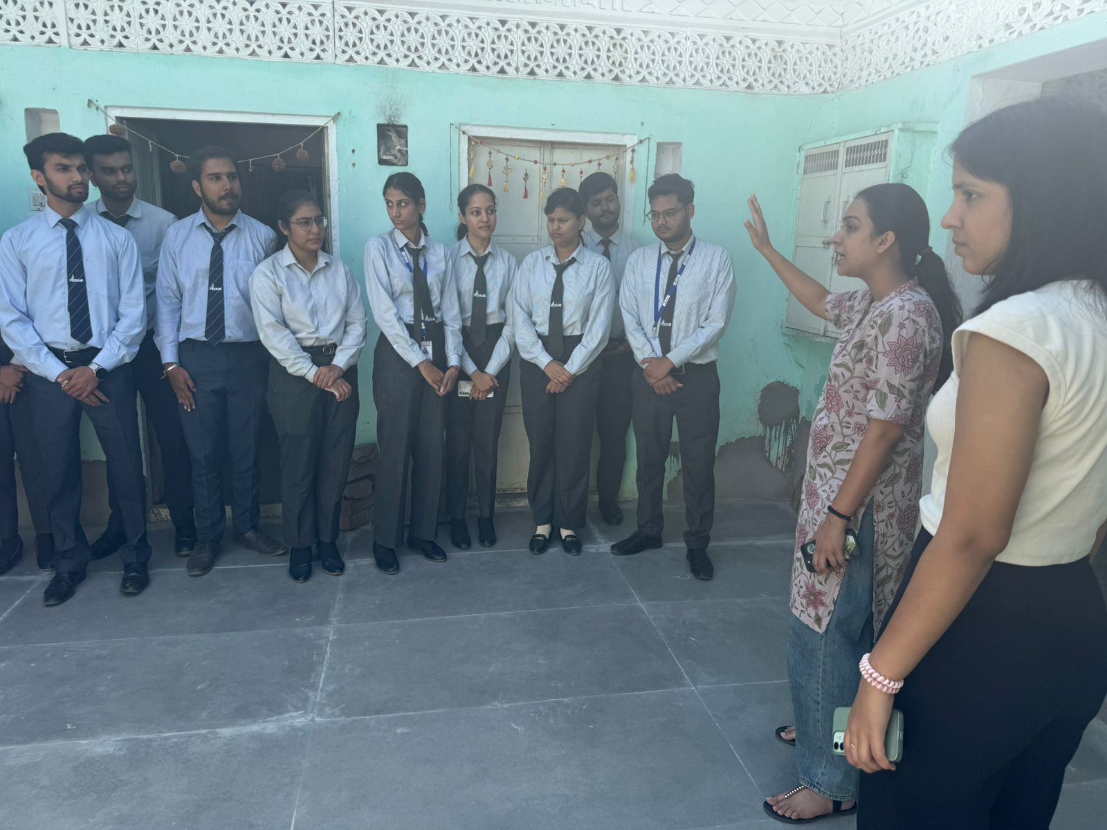 The visit was organized to provide experiential learning to the MBA and PGDM students by engaging them in a cultural and corporate social responsibility (CSR) initiative. The objective was to expose students to sustainable business practices and the deep connection between corporate values, culture, and community engagement through the Diwali celebration with artisans at Jaipur Rugs.