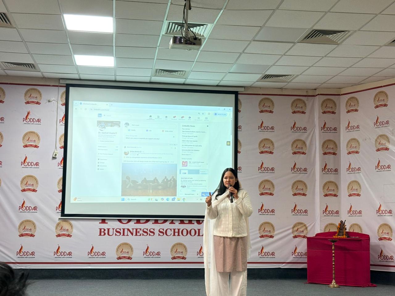 An impactful and interactive LinkedIn Profile Building Session for MBA students of Poddar Management and Technical Campus, aimed at strengthening their digital presence and professional visibility. The session was expertly led by Dr. Vaishali Gupta.