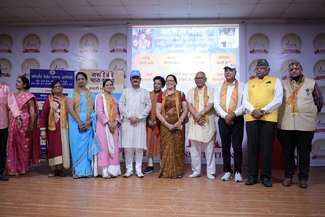Mr.Pawan Arora, Commissioner housing board was the Chief Guest. Chairman of Poddar Group Dr.Anand Poddar sir announced many welfare Programmes - Qualitative education, vocational education, Health and heigne awareness for the Poor and needy children and women's.NSS Volunteers conducted this social work with full of enthusiasm.