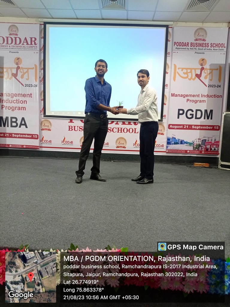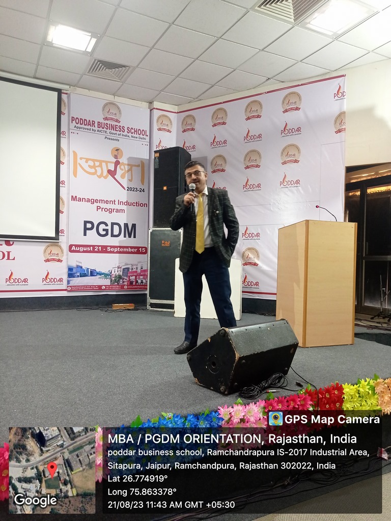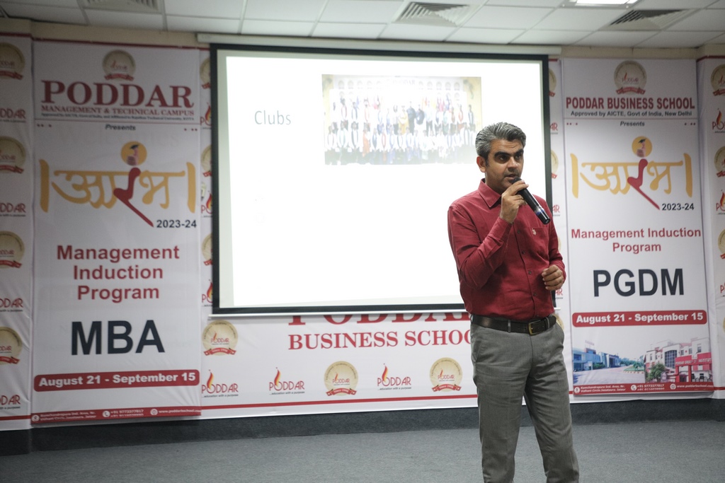 The Orientation Program “Aarambh” of MBA and PGDM students of Poddar Group of Institutions, Jaipur was organized today at Poddar Business School, Sitapura. In his address, Chairman Dr. Anand Poddar inspired students to focus on experiential learning and entrepreneurial activities, citing quotes from Indian scriptures. Prof. Shekhar Shukla of IIM Indore was the Chief Guest at the event.
