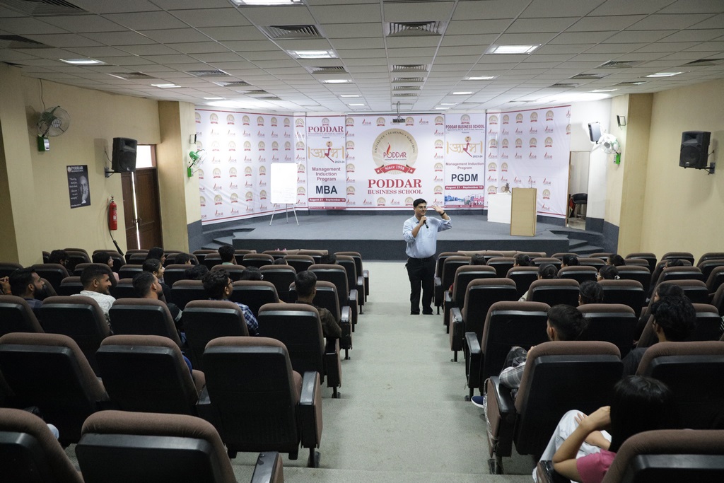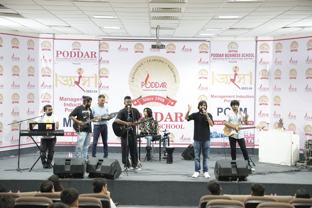 Guest of Honour Mr. Ajay Gupta, renowned industrialist and technology expert said the management learners should be aware of latest advances in Artificial Intelligence and environmental sustainability. Dr. Devendra Arora (Director) mentioned innovative learning methodologies used in the Poddar Group. Dr. Sunil Kakkar (Dean) also addressed the gathering. Innovative and fun management activities were organized in which students learned basic management concepts such as teamwork and communication. The first day of the program also included a dazzling performance by musical group ‘The Nameless Music Company’.