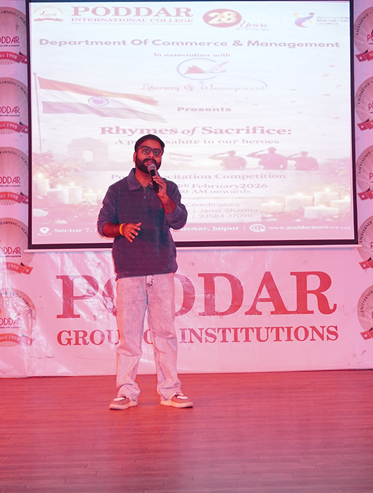 “Poddar International College” celebrated “Hindi Diwas” with great enthusiasm. The event was organized by the “Department of Commerce & Management” in collaboration with the “Literary and Management Club”.