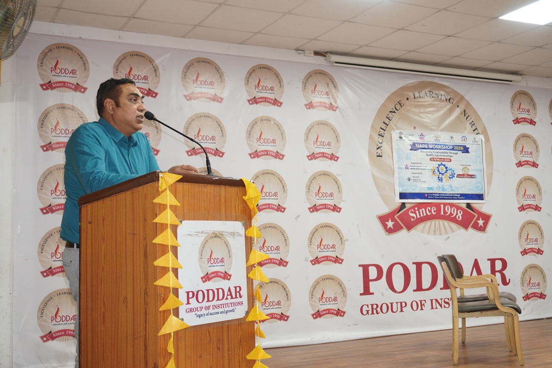 Poddar Sansthan, Jaipur organized an awareness and engagement program on the National Apprenticeship Promotion Scheme (NAPS) to highlight the importance of apprenticeships in strengthening industry–academia collaboration and enhancing youth employability. The program began with a welcome address by Dr. Reema Singh who welcomed all dignitaries, industry representatives, academicians, and participants.