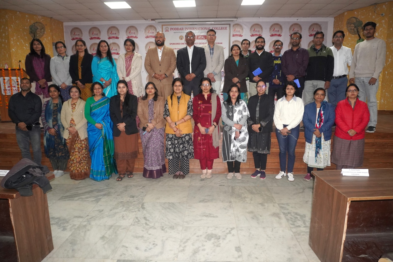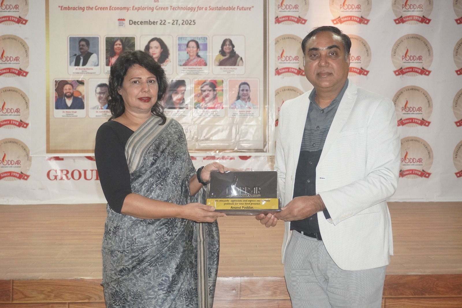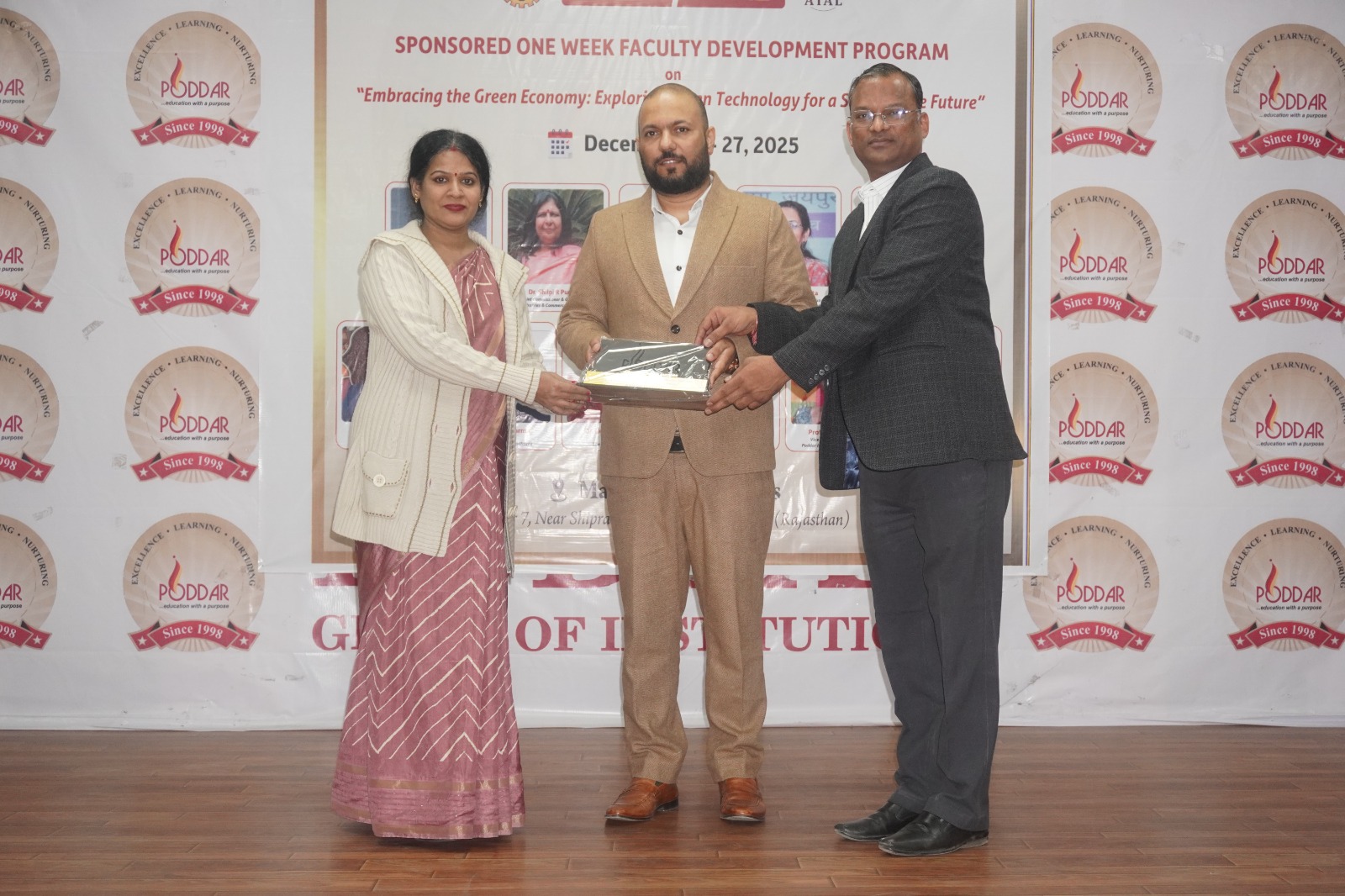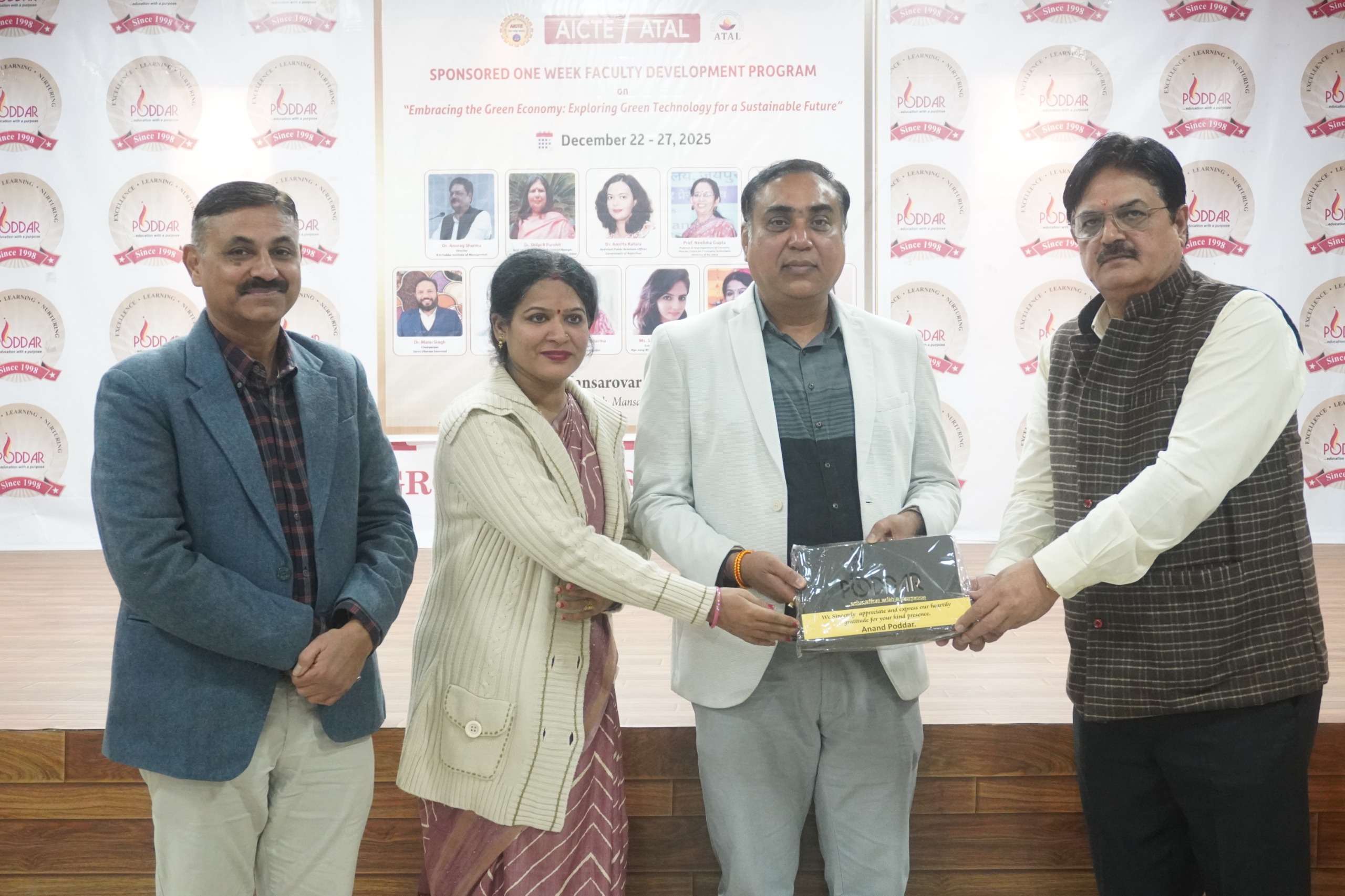 The successful organization of the Faculty Development Programme was made possible through the constant support and encouragement of the management and academic leadership of the Poddar Group of Institutions. The report duly acknowledges the visionary guidance of the Honourable Chairman, Dr. Anand Poddar, and the Vice Chairperson, Mrs. Roopal Poddar, whose commitment to academic excellence and sustainable initiatives provided strong impetus to the programme.