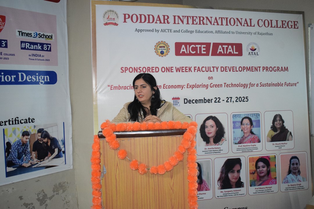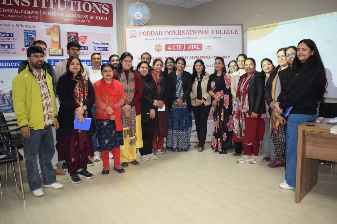 The AICTE ATAL–Faculty Development Programme was conducted with great enthusiasm and learning spirit, under the visionary guidance and constant support of the Honorable Chairman of Poddar Group of Institutions, Dr. Anand Poddar, and the Honorable Vice Chairperson, Mrs. Roopal Poddar. Their encouragement continues to strengthen the academic and professional enrichment initiatives at Poddar International College.