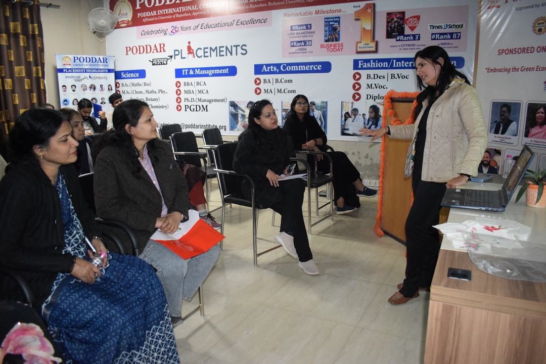 The session formally commenced with a warm welcome of the speaker by the Vice Principal of Poddar International College, Dr. Meenu Mangal. At the conclusion, a heartfelt vote of thanks was presented jointly by Dr. Meenu Mangal and Dr. Reema Singh, FDP Coordinator, expressing gratitude to the resource person and acknowledging the active participation of all attendees. The stage proceedings were efficiently conducted by Dr. Arti Sharma, ensuring smooth coordination throughout the session.