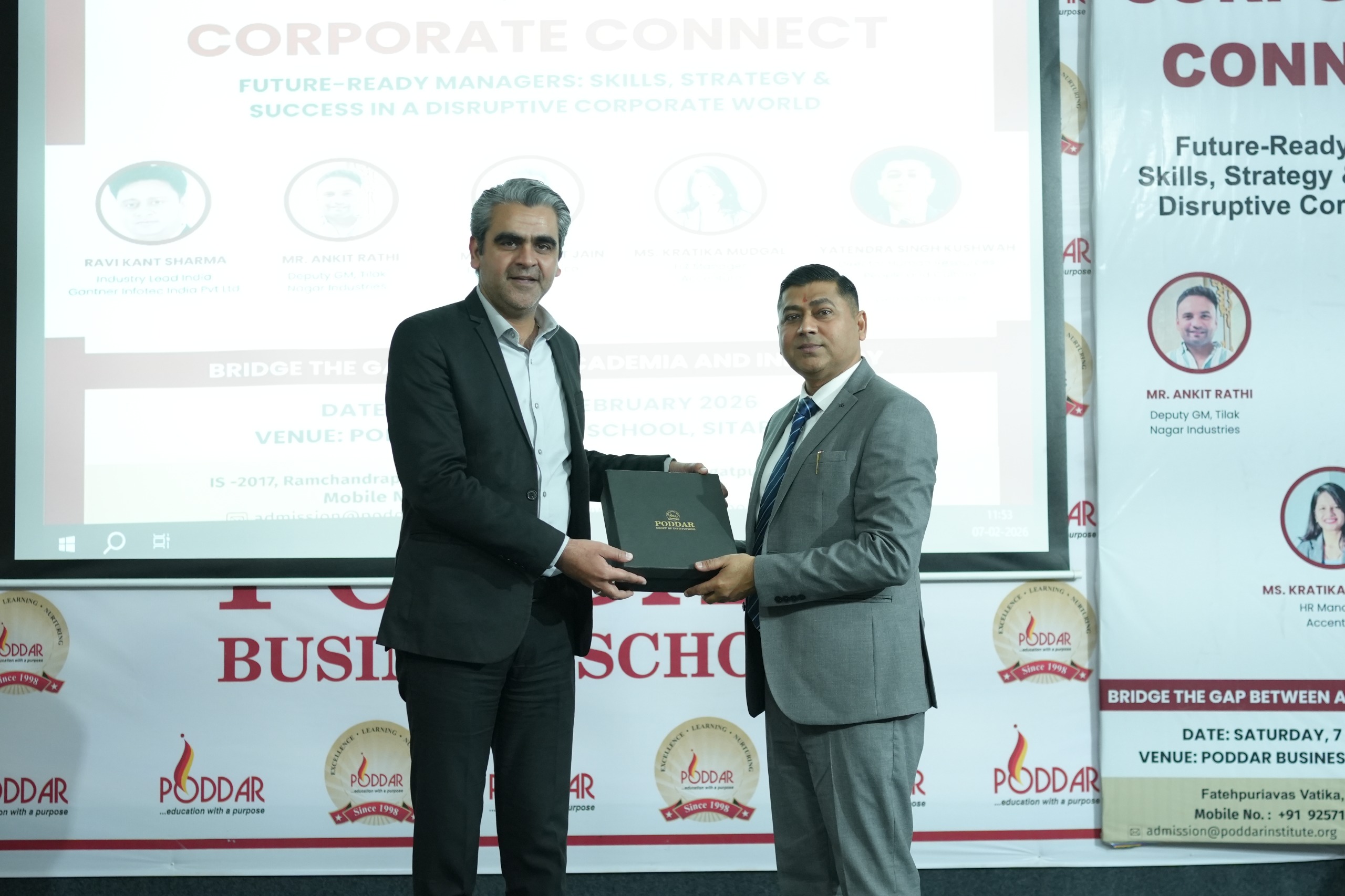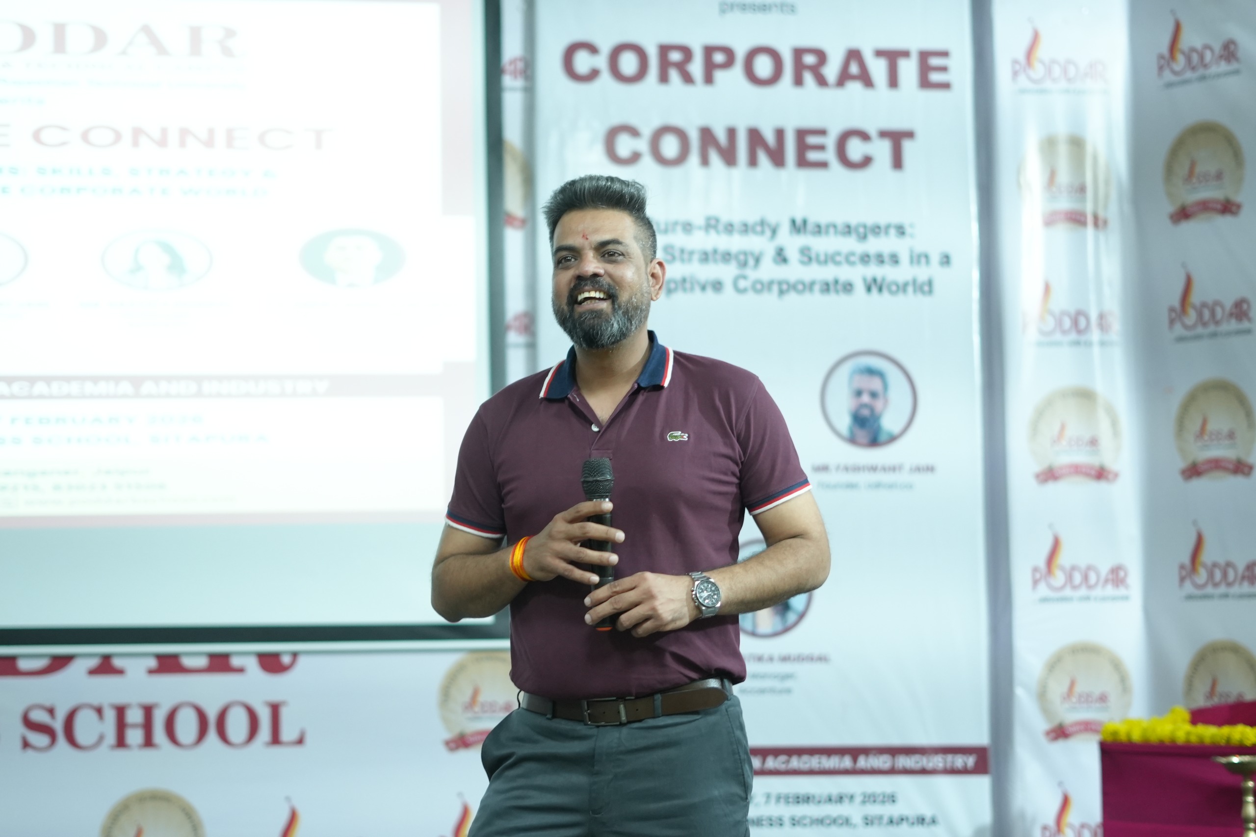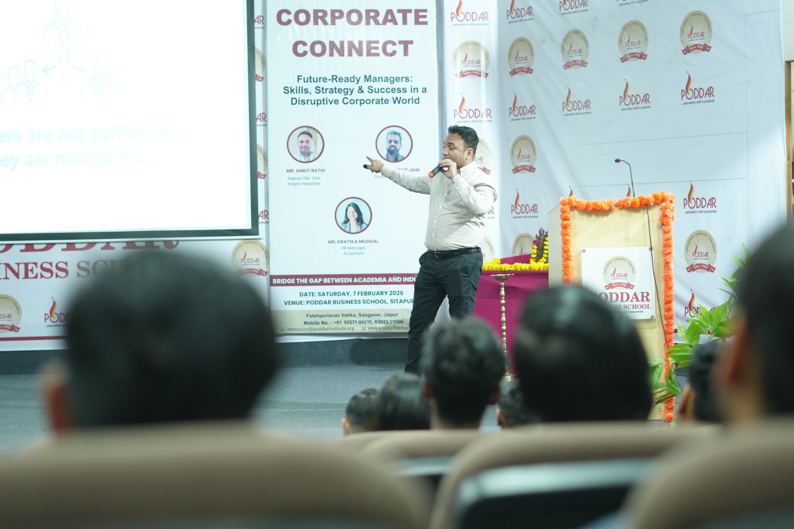 The Corporate Connect program was organized with the objective of bridging the gap between academia and industry by providing PGDM Trimester II students with first-hand exposure to corporate insights, evolving managerial skills, and real-world industry expectations. The session aimed to prepare students to become future-ready managers capable of thriving in a dynamic and disruptive corporate environment.