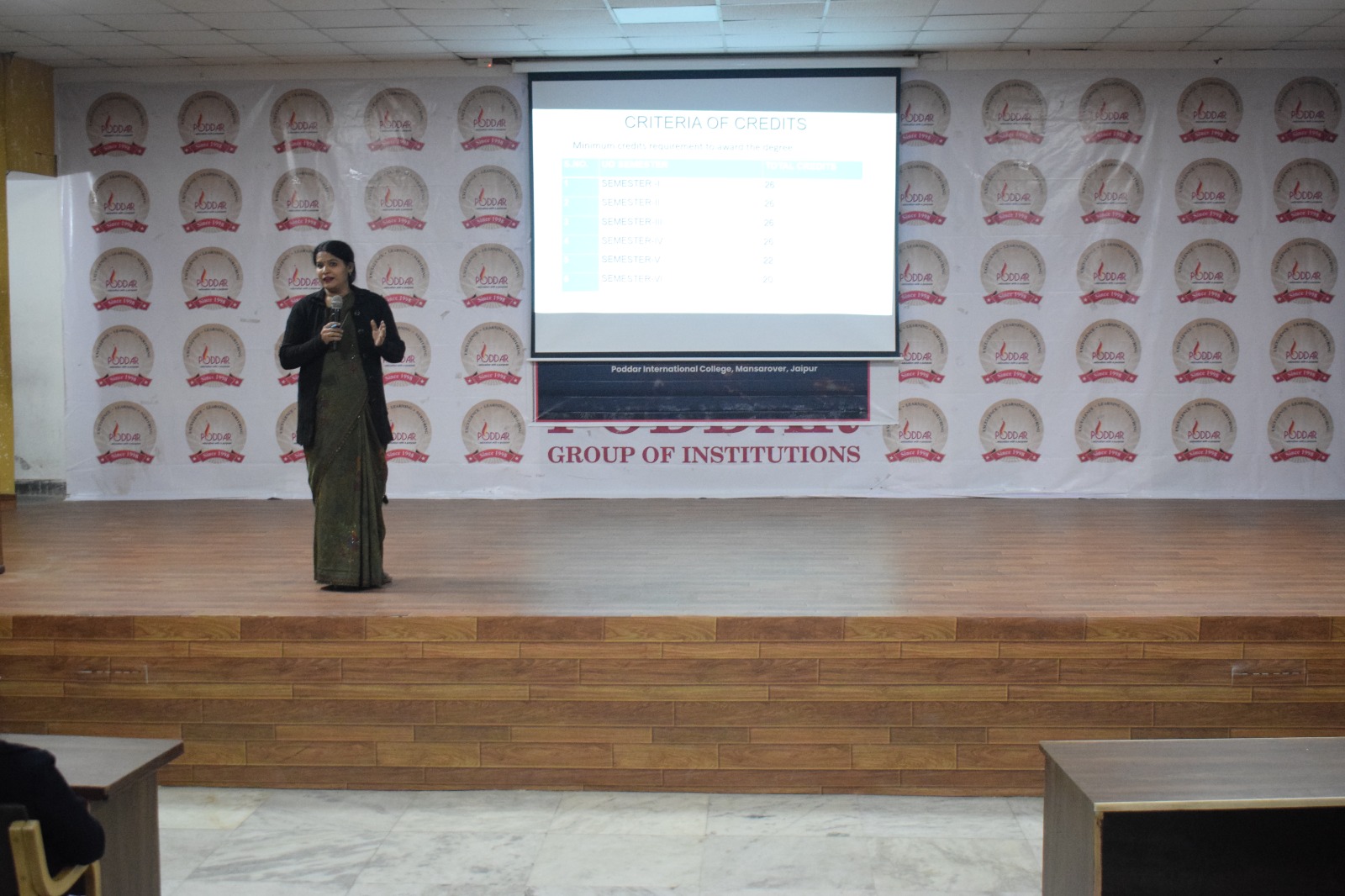 The workshop was conducted to apprise students of BBA, B.Com, B.Sc, BA and BCA programmes about the key academic and examination-related provisions of the National Education Policy (NEP) 2020. The session offered clear insights into the examination pattern, marking scheme, weightage of mid-term examinations, minimum credit requirements, and the implications of non-fulfilment of credits, including Not Promoted and Back Promoted result statuses. Special emphasis was laid on the art of effective answer writing, the credit-based system, and the overall assessment structure, enabling students to approach examinations with greater clarity and confidence.