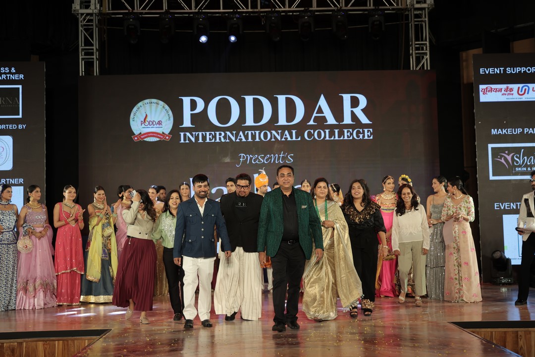 Poddar Group of Institutions organized Fashion Runway 4.0—the Annual Fashion Show that showcased regal drapes, timeless beauty, and breathtaking fashion at Rajasthan International Centre, Jaipur. Fashion Design students of Poddar International College wowed the audience with couture on themes such as Shringara, Mauryan to Mughal, Saheliyon Ki Baadi, Sunny Day at Masai, Caramel Shadows, Jaipur Akashwani, Blue Serenity, Masquerade Prom Party, Moroccan Bazaar, Harmony in Duality, Noor-E-Sheesh, Ragas of Vrindavan, and Sangam.