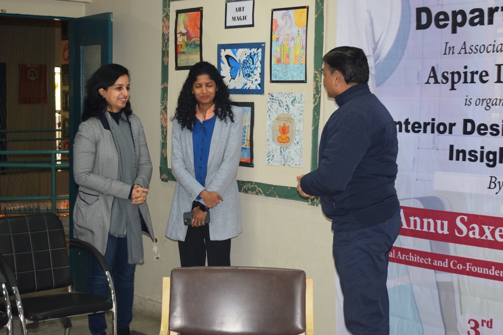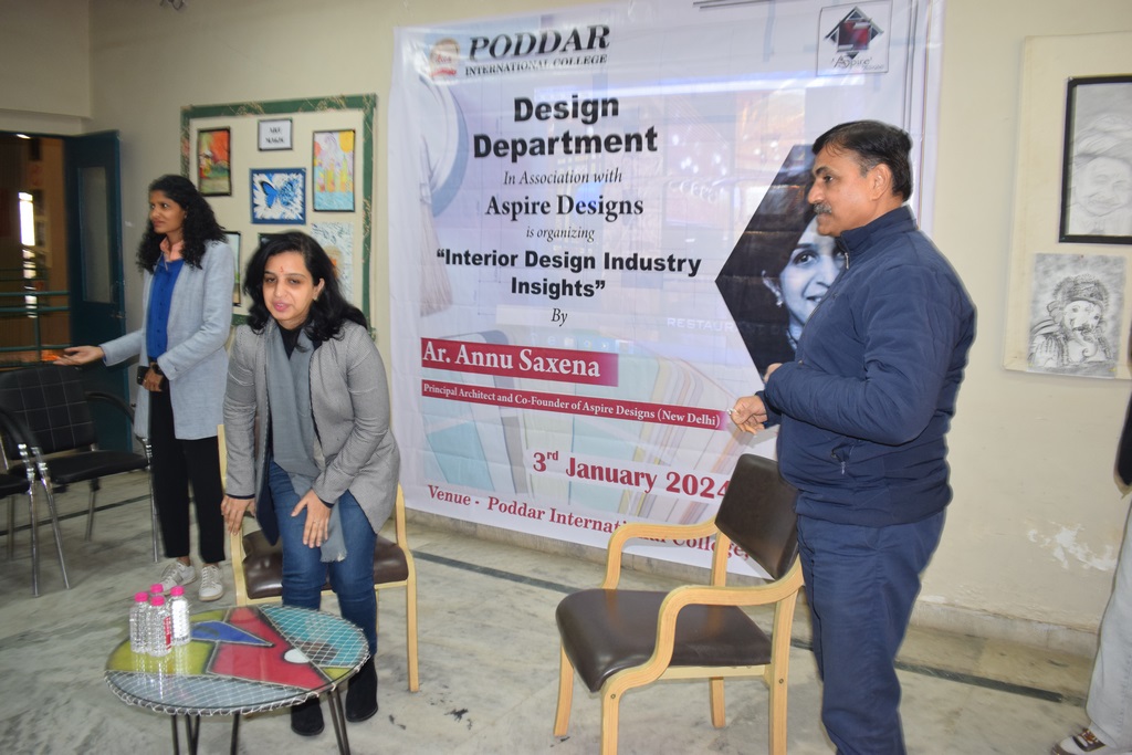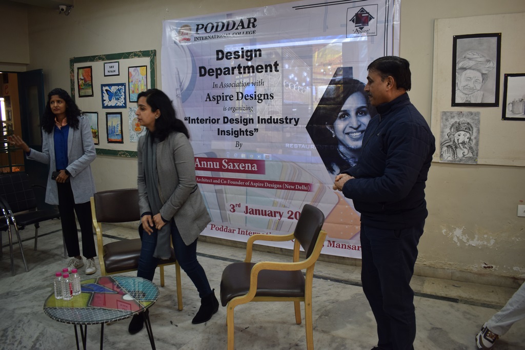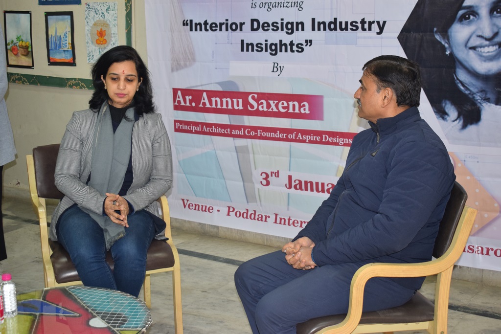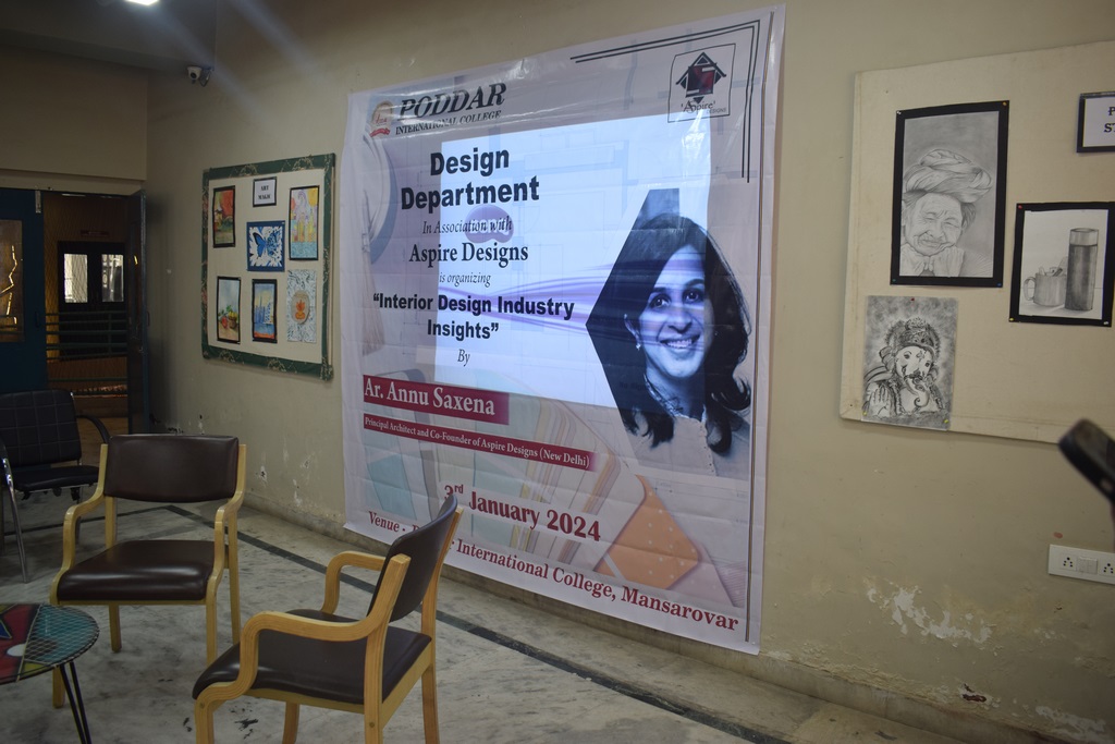"Interior Design Industry Insights" conducted at Poddar International College. Ar. Annu Saxena, the esteemed Director and Co-founder of Aspire Designs, New Delhi, graciously shared her wealth of experience and knowledge with our interior design students.