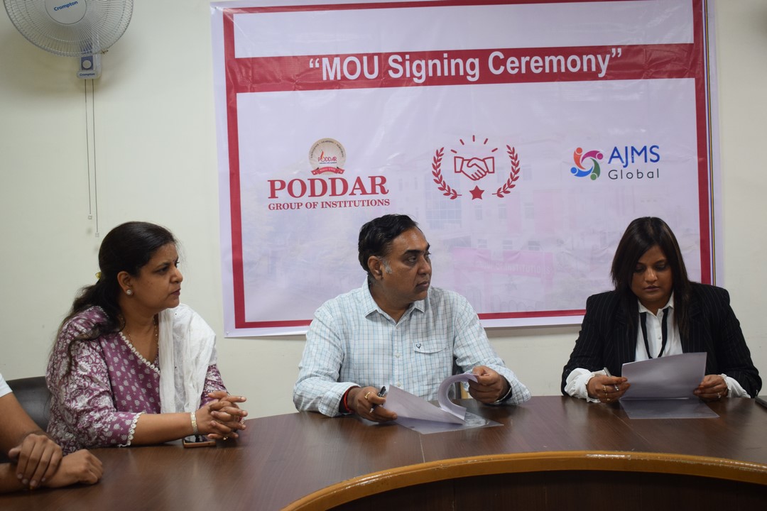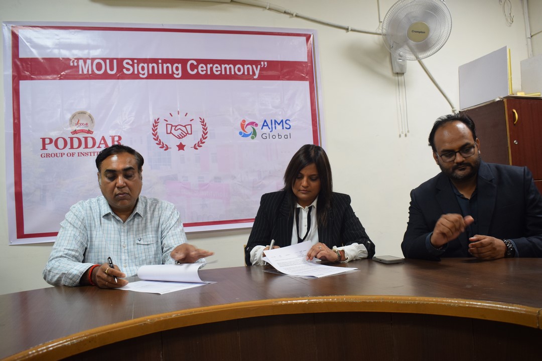 During the signing of the MoU, the key individuals present were Dr. Anand Poddar, Chairman of Poddar International College, and Mr. Wasim Ali, Managing Director of Unique Computers. Prof. Praveen Goswami, the Principal of the college, and Dr. Sunil Kakkar, the Dean of Academics, were also present to witness the occasion.