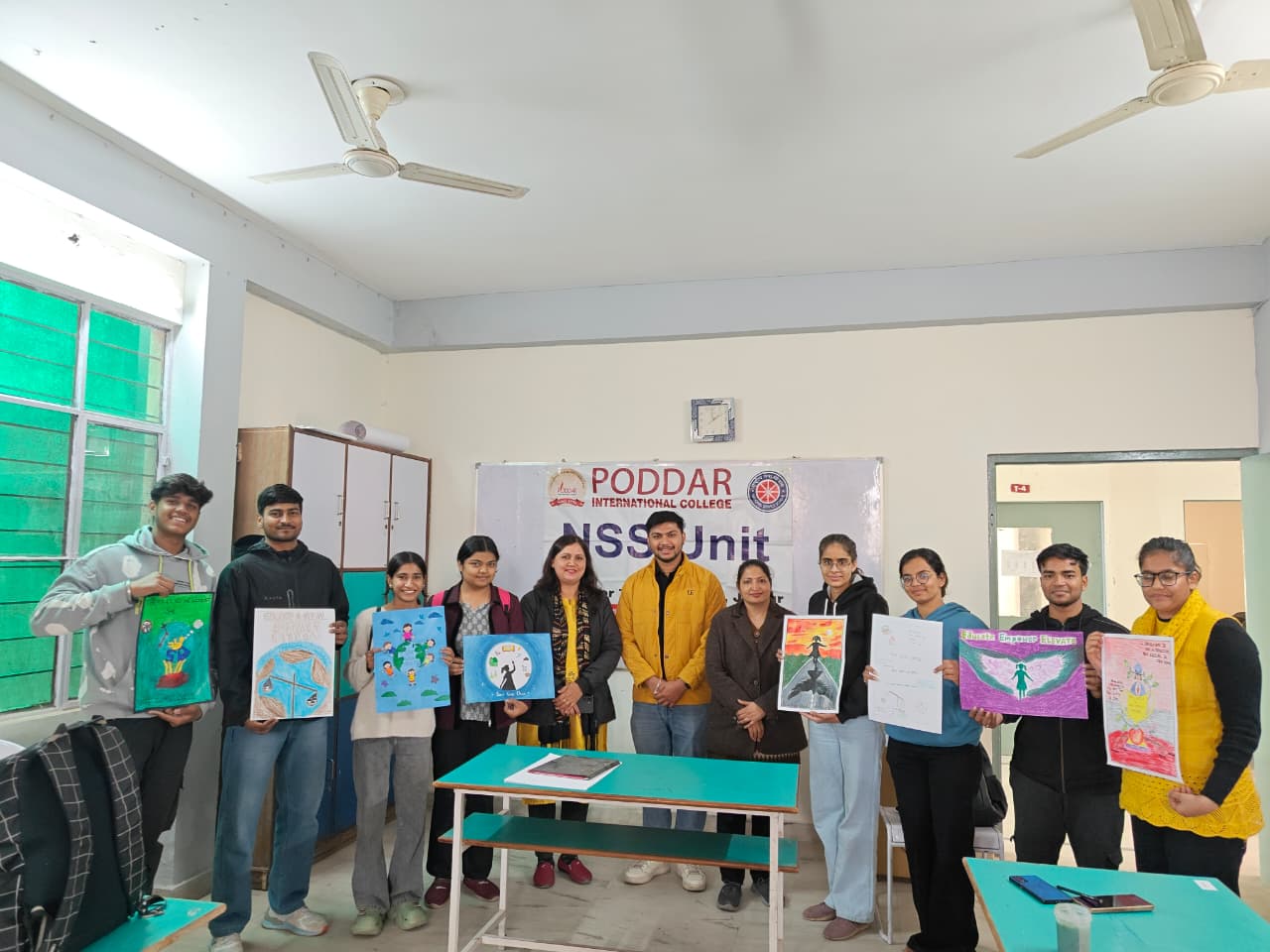 On the occasion of *National Girl Child Day, a **Poster and Slogan Competition* was organized by NSS club in association with department of Arts, Poddar International College,to create awareness about the importance of the girl child and to promote gender equality. Students enthusiastically participated in the activity and expressed their ideas through creative posters and meaningful slogans focusing on themes such as Save the Girl Child, Educate the Girl Child, and Women Empowerment. The competition encouraged students to think critically about the challenges faced by girls in society and the need to ensure equal rights and opportunities for them.