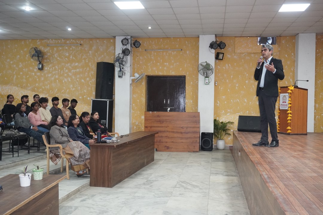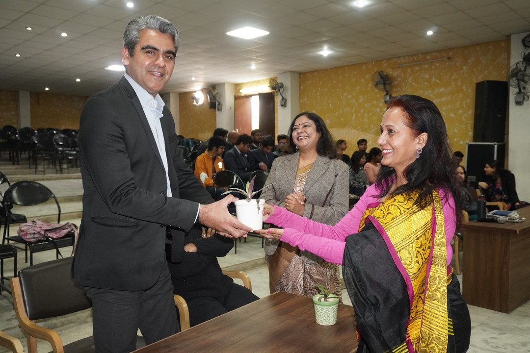 Following the welcome, Dr. Sunil Kakkar conducted an insightful and highly engaging session. His talk was interactive, activity-based, and thought-provoking, encouraging students to participate actively. Through real-life examples and experiential activities, he inspired students to develop a positive mindset, effective communication skills, and a goal-oriented approach toward their studies and future careers.