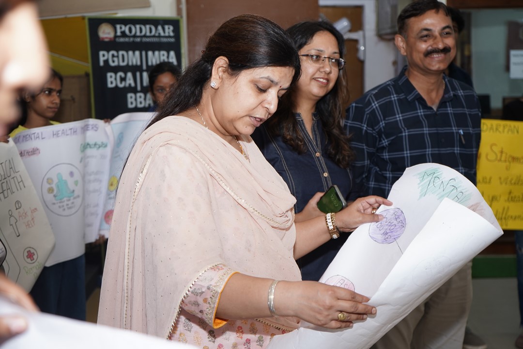 The programme was graced by the presence of Our respected Vice Chairperson Ms. Roopal Poddar Mam, Principal Praveen Goswami Sir NSS Programme Officer Dr. Shilpika Tewari & Dr. Vinod Kumar Jain and the esteemed Guest Ms. Monika Pareek Mam They appreciated the enthusiasm and creativity of the students and highlighted that mental well-being is the foundation of overall success and happiness in life.