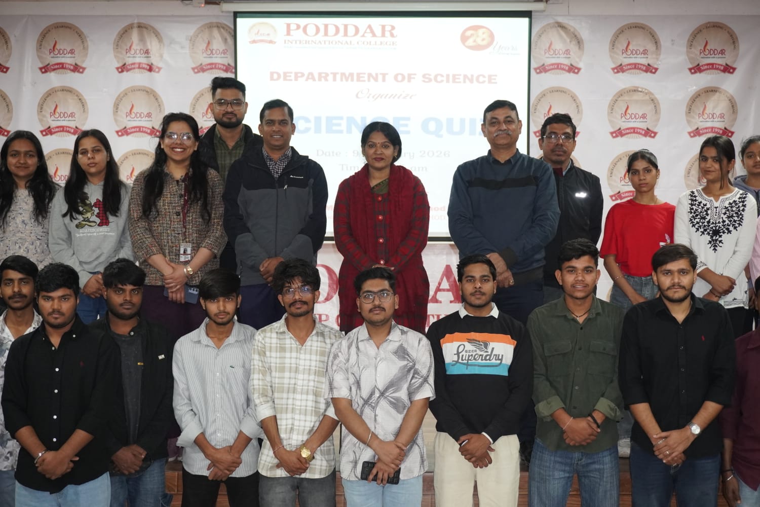 The Science Department of Poddar International College, Jaipur organised a Science Quiz Competition on 9 February 2026 to mark the celebration of 28 Years of Excellence. Students of the Science Department actively participated and showcased their scientific knowledge and analytical skills. The quiz promoted academic interest, teamwork, and a competitive learning environment among students. The event was conducted smoothly and achieved its academic objectives.