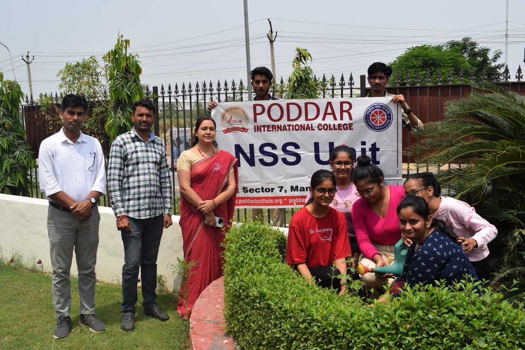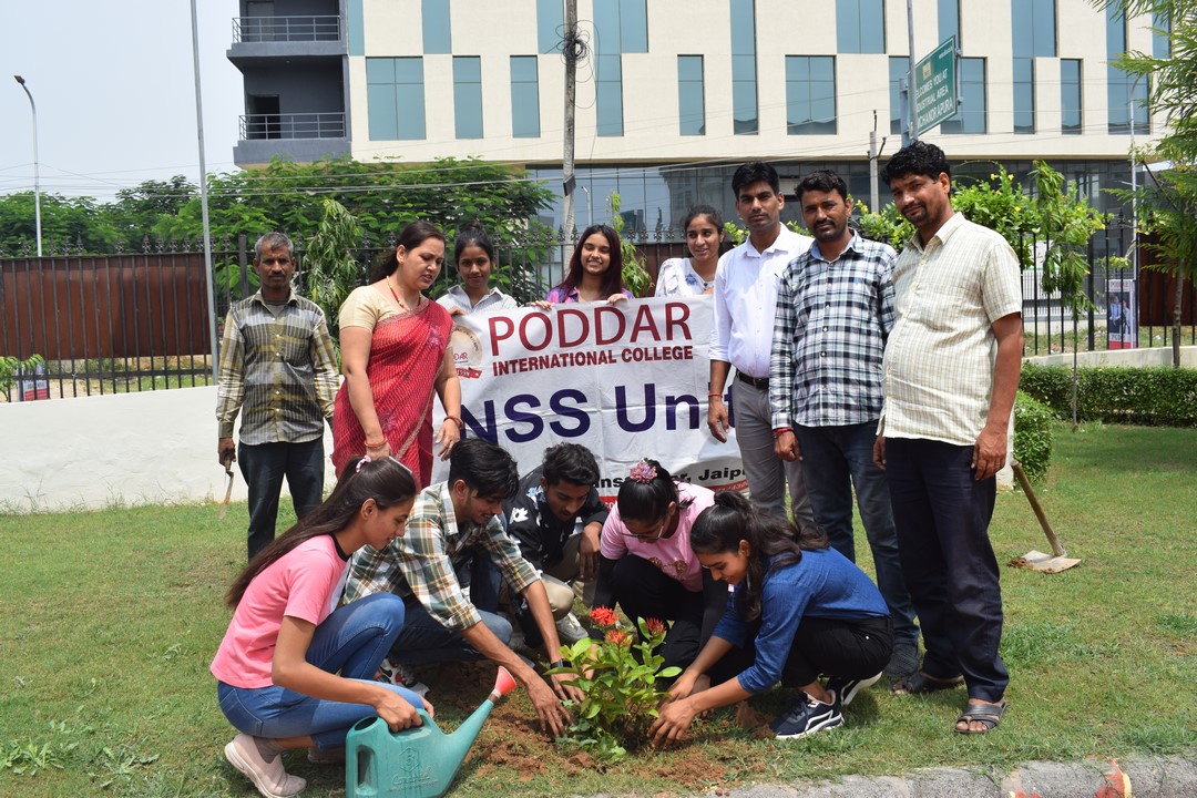 The NSS Cell of Poddar International College celebrated NSS Day on September 25, 2023 with great zeal and enthusiasm. The event started by welcoming the Chief Guest of the event Professor Snigdha Sharma, Principal of Government College; District Coordinator, NSS; District Coordinator, SVEEP. The NSS aims and activities were elucidated by NSS Coordinator Dr. Shilpika Tewari through a presentation. Dr. Praveen Goswami, Principal of Poddar International College addressed the students stating about the significance of NSS Day and highlighted the importance of youth power in the development of the society and country. Various cultural activities like Dance, Singing and Drama were held in which students participated with great excitement. Besides, there were competitions on Poster Making and Poetry Recitation. The First, Second and Third winners of the event were awarded with certificates. The NSS volunteers of II and III Year were also commended for their active contribution in the NSS activities and were given Certificates of Recognition. There was also an Oath Ceremony for the NSS volunteers. The NSS Coordinator Dr. Poonam Dhawan presented vote of thanks to the guests.